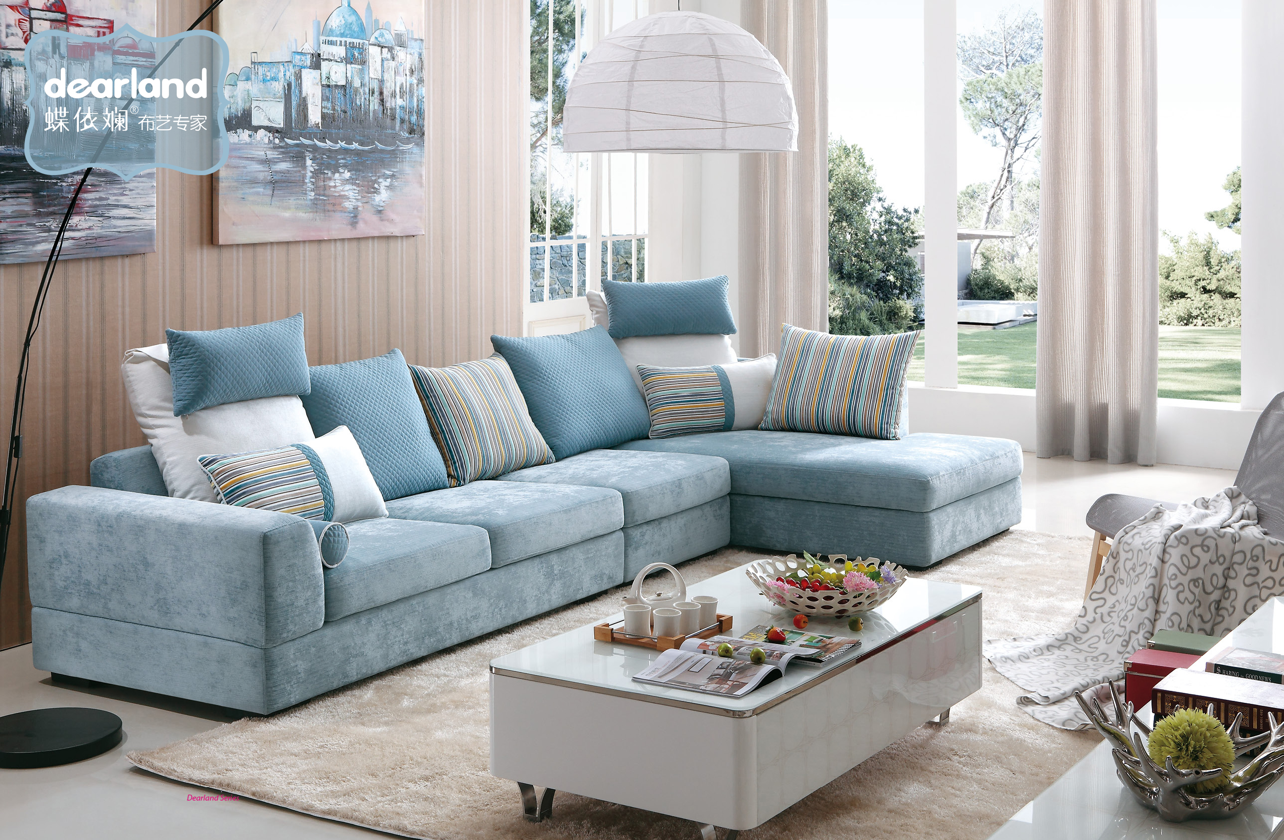 而最近流行的“藍色+黃色”色系的沙發(fā),比如DYL366也足夠吸引眼球,高明度的藍色展現(xiàn)出青春自然的輕盈感與舒適感,營造出舒緩平和的空間氛圍。小抱枕上跳躍的含羞草花黃色點綴,讓整個空間都溫暖靈動起來。