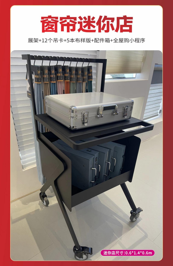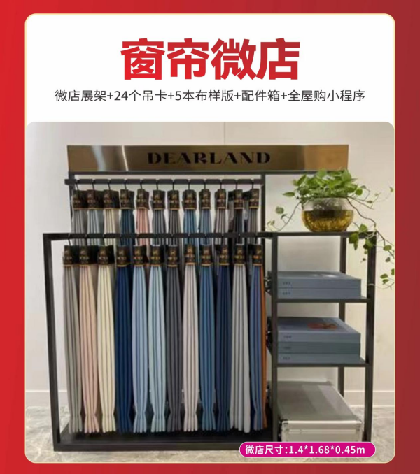 窗簾微店(展架1.4*1.68*0.45+24個(gè)吊卡+5本布樣版+配件箱+全屋購(gòu)小程序)