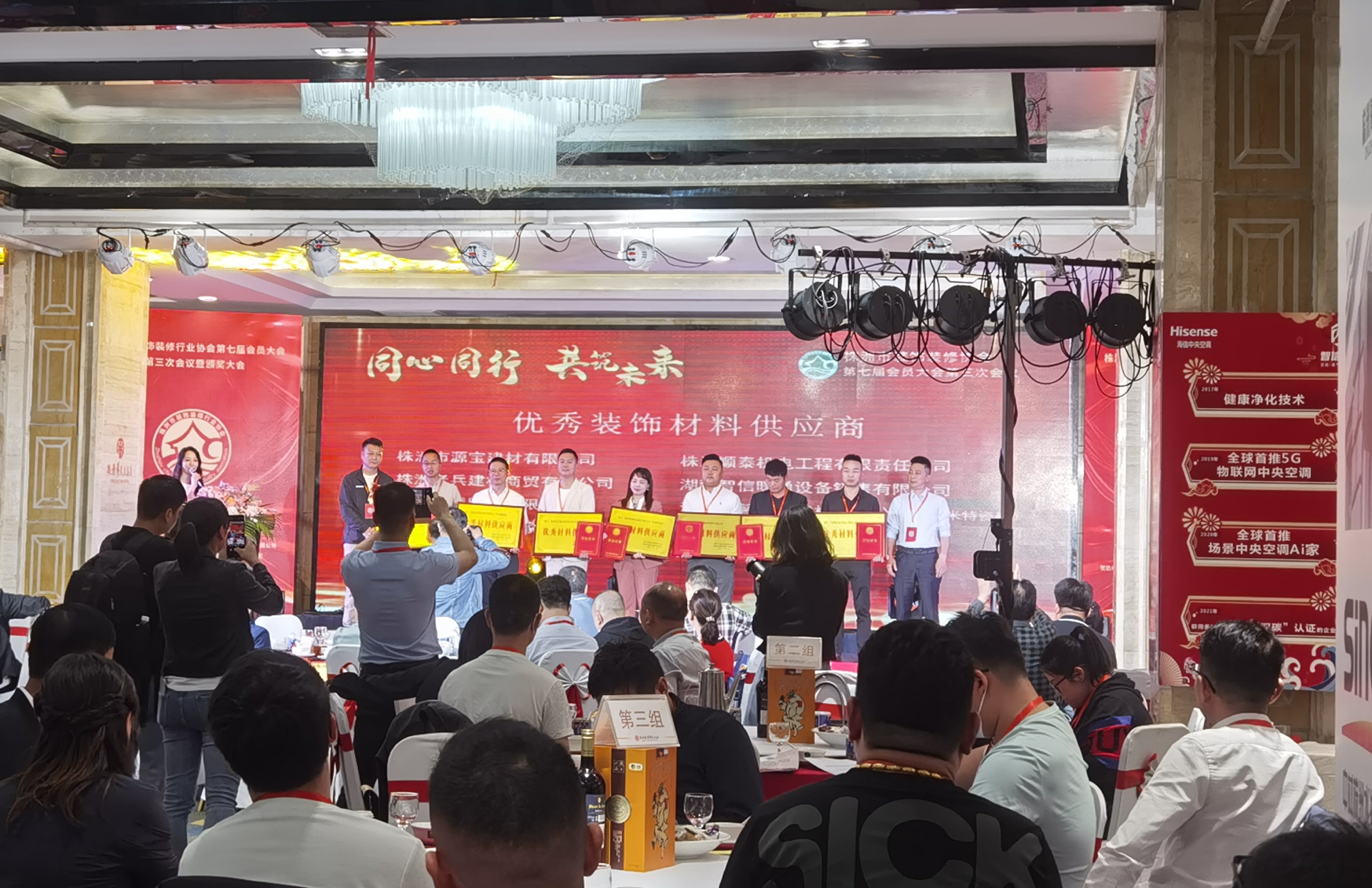 “同心同行,共筑未來”。5月14日,株洲市裝飾裝修行業(yè)協(xié)會(huì)舉行第七屆會(huì)員大會(huì)暨頒獎(jiǎng)大會(huì)。蝶依斕湖南公司榮膺2021年度市裝飾裝修行業(yè)“優(yōu)秀材料供應(yīng)商”稱號(hào)。