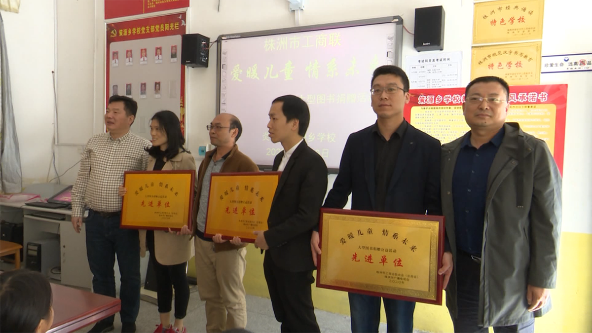 此次活動為炎陵縣策源學校共捐贈圖書2000冊,捐書儀式結(jié)束后,市工商聯(lián)領(lǐng)導為此次活動中的部分優(yōu)秀單位頒發(fā)了愛心獎牌,蝶依斕家居等愛心企業(yè)榮獲“先進單位”獎牌。