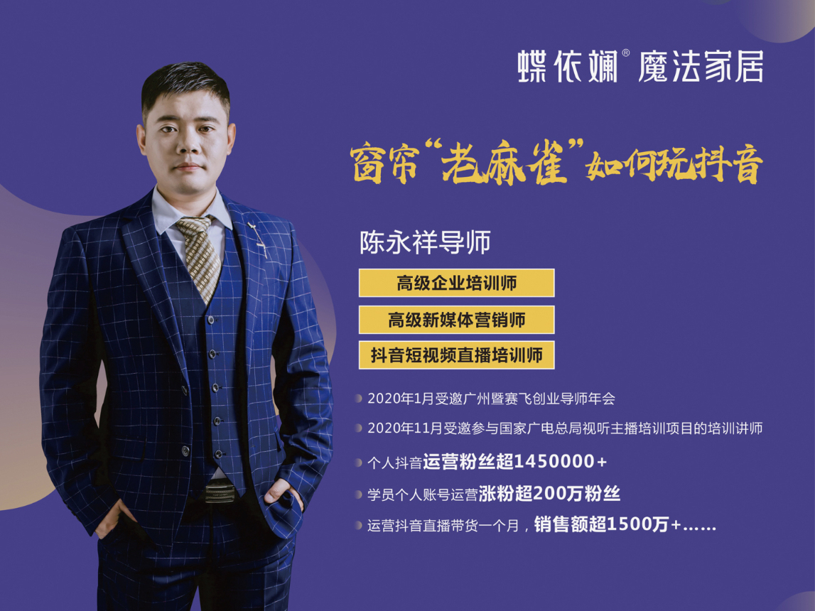 流量時代,如何用最小的成本,實現門店最大覆蓋面的曝光?如何利用抖音同城號的新風口,打造自己門店的STYLE? 抖音如何拍?爆款內容如何寫?怎么蹭熱點獲流量?7月29-30日,蝶依斕魔法整家抖音密訓,將特別邀請廣州好居優(yōu)家陳永祥導師為你一一揭曉,手把手幫扶專賣店運營抖音同城號,打造窗簾網紅店。