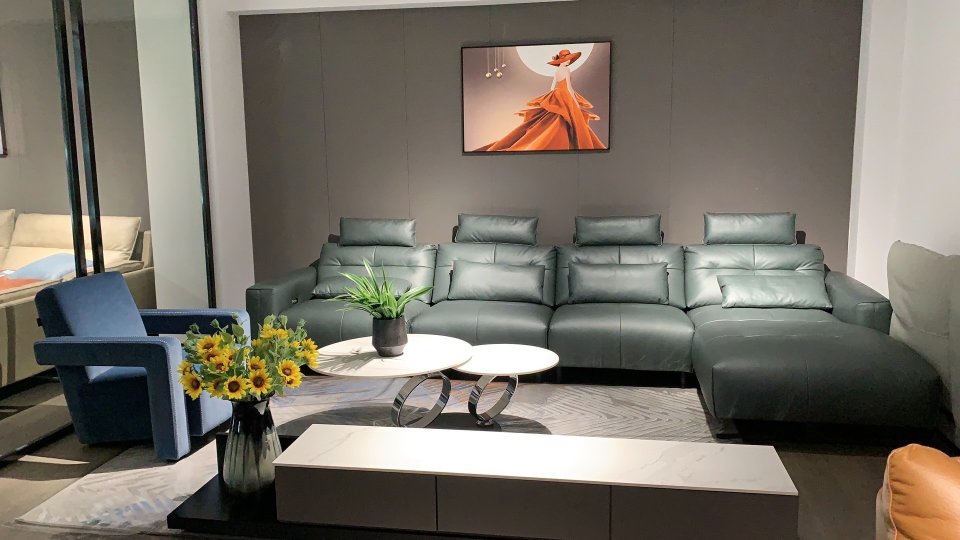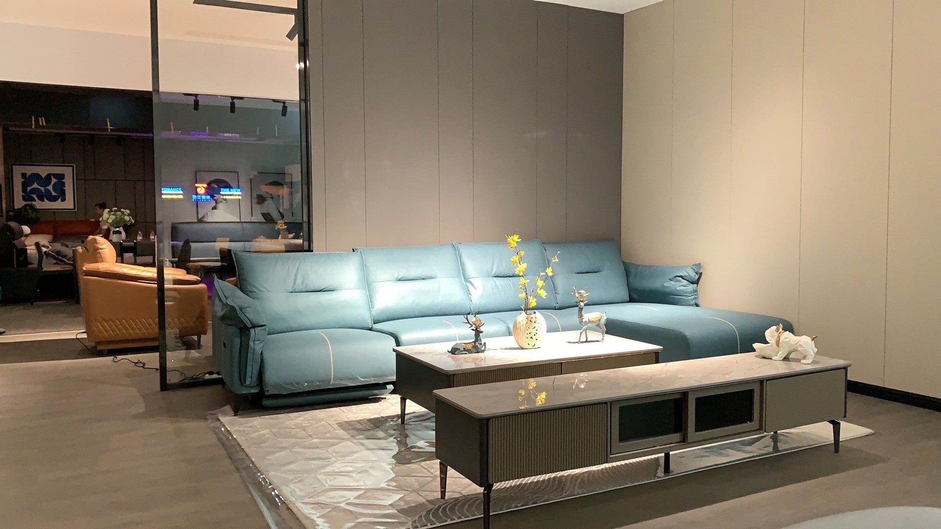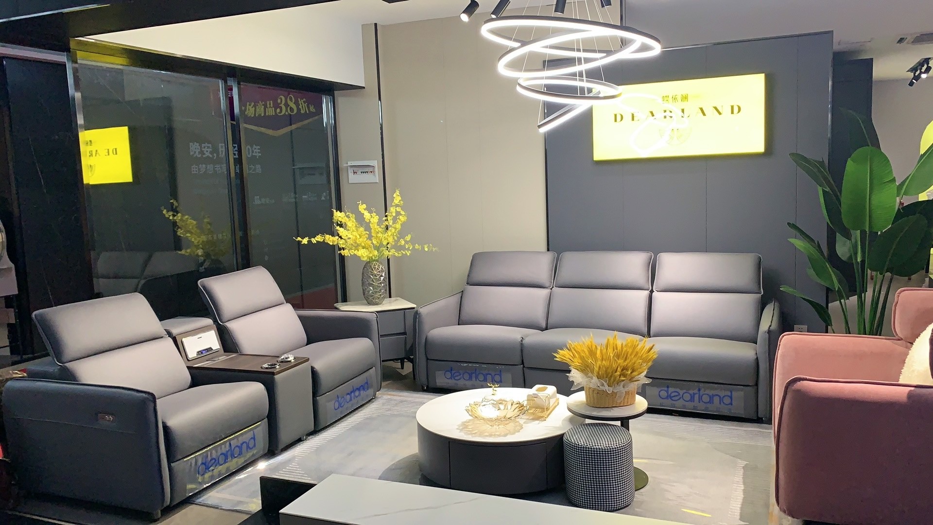 鐘祥門店內(nèi)涵蓋魔法整家2021年功能沙發(fā)、休閑沙發(fā)、軟床、床墊新品,同時(shí)主打產(chǎn)品、每個(gè)空間和場(chǎng)景都相應(yīng)配備有茶幾、餐桌、電視柜等配套家居。全店以整體配套式家居布局?jǐn)[場(chǎng)。