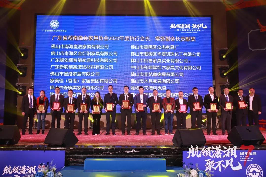 本月初,廣東省湖南商會家具協(xié)會第三屆理事會就職典禮暨七周年慶典在順德龍江圓滿舉行。儀式舉行了第三屆理監(jiān)事會就職頒牌儀式。蝶依斕再次當(dāng)選協(xié)會常務(wù)副會長,這已是蝶依斕連續(xù)三屆當(dāng)選。