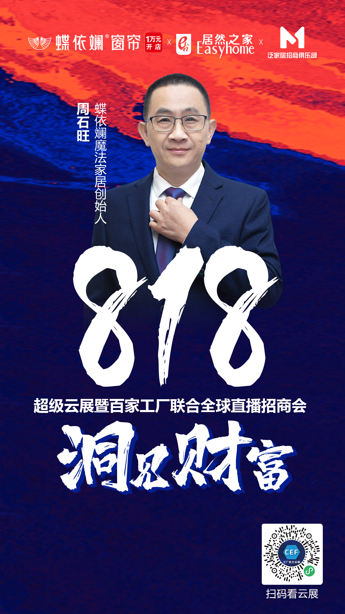 8月10日,洞見.財富-818超級云展啟動會舉行,蝶依斕攜手居然之家及泛家居招商俱樂部,與泛家居行業(yè)實力品牌、大牌工廠,正式開啟“抱團,打造高質量數(shù)字化招商”818超級云展暨工廠聯(lián)合全球直播招商會,多方聯(lián)動,勢能聚合,超燃來襲!