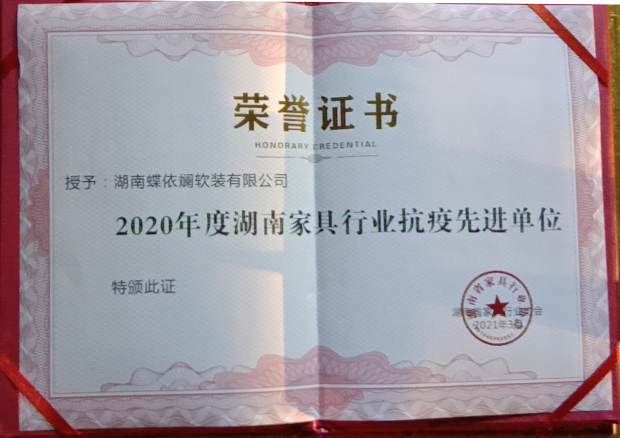 蝶依斕魔法整家榮獲湖南家具行業(yè)抗疫先進(jìn)單位