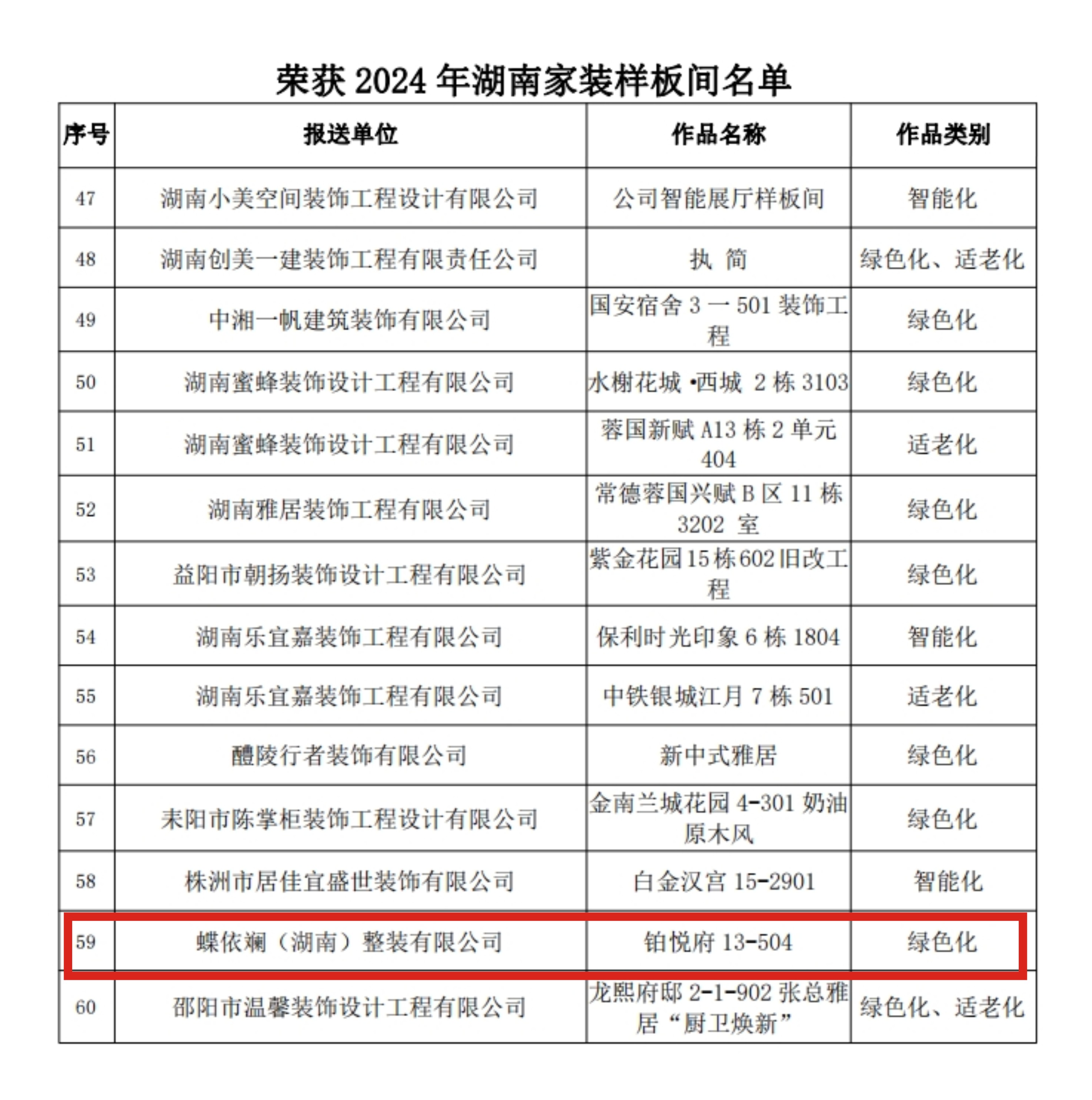 蝶依斕整裝工地獲評“湖南省家裝樣板間”