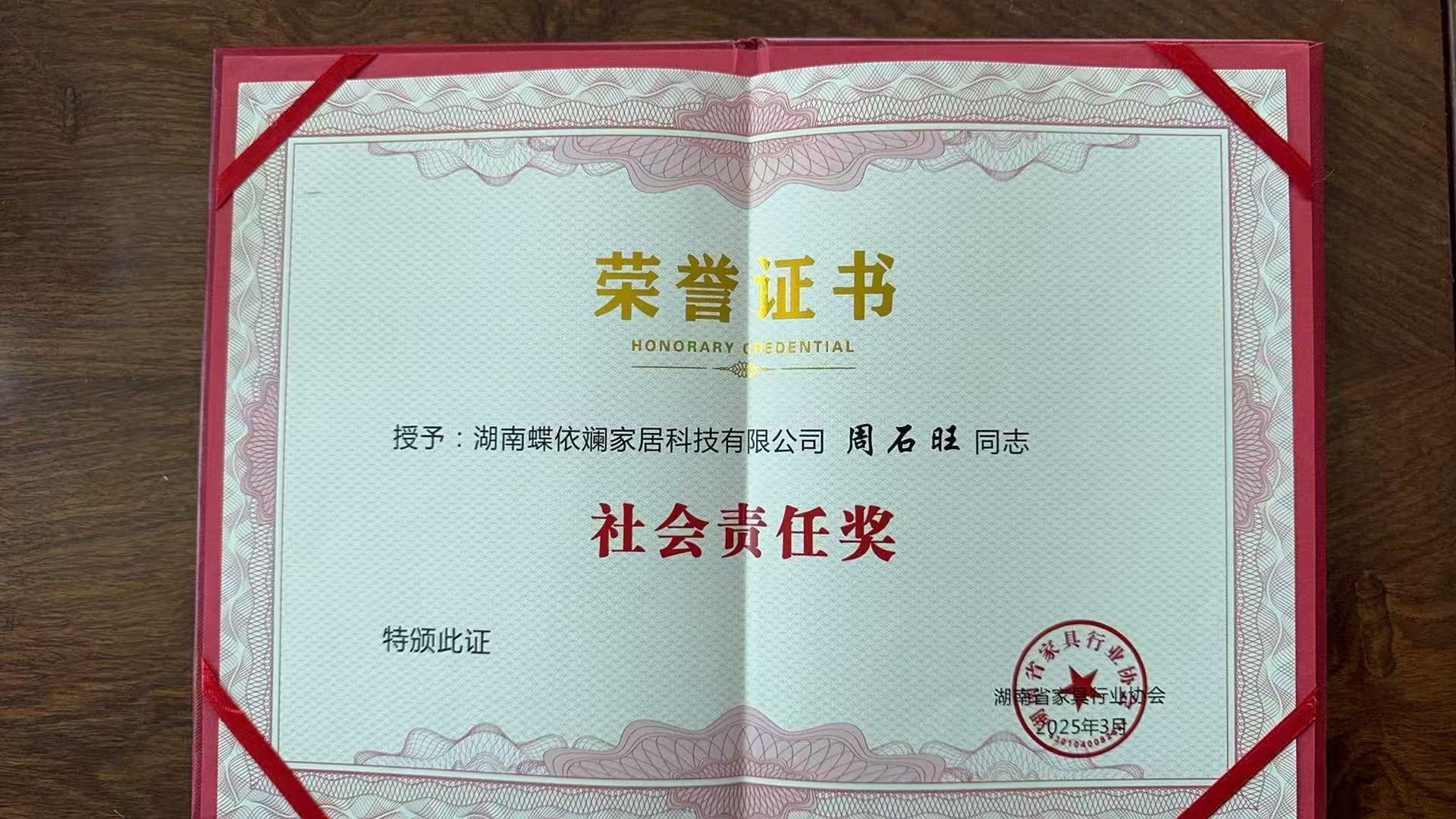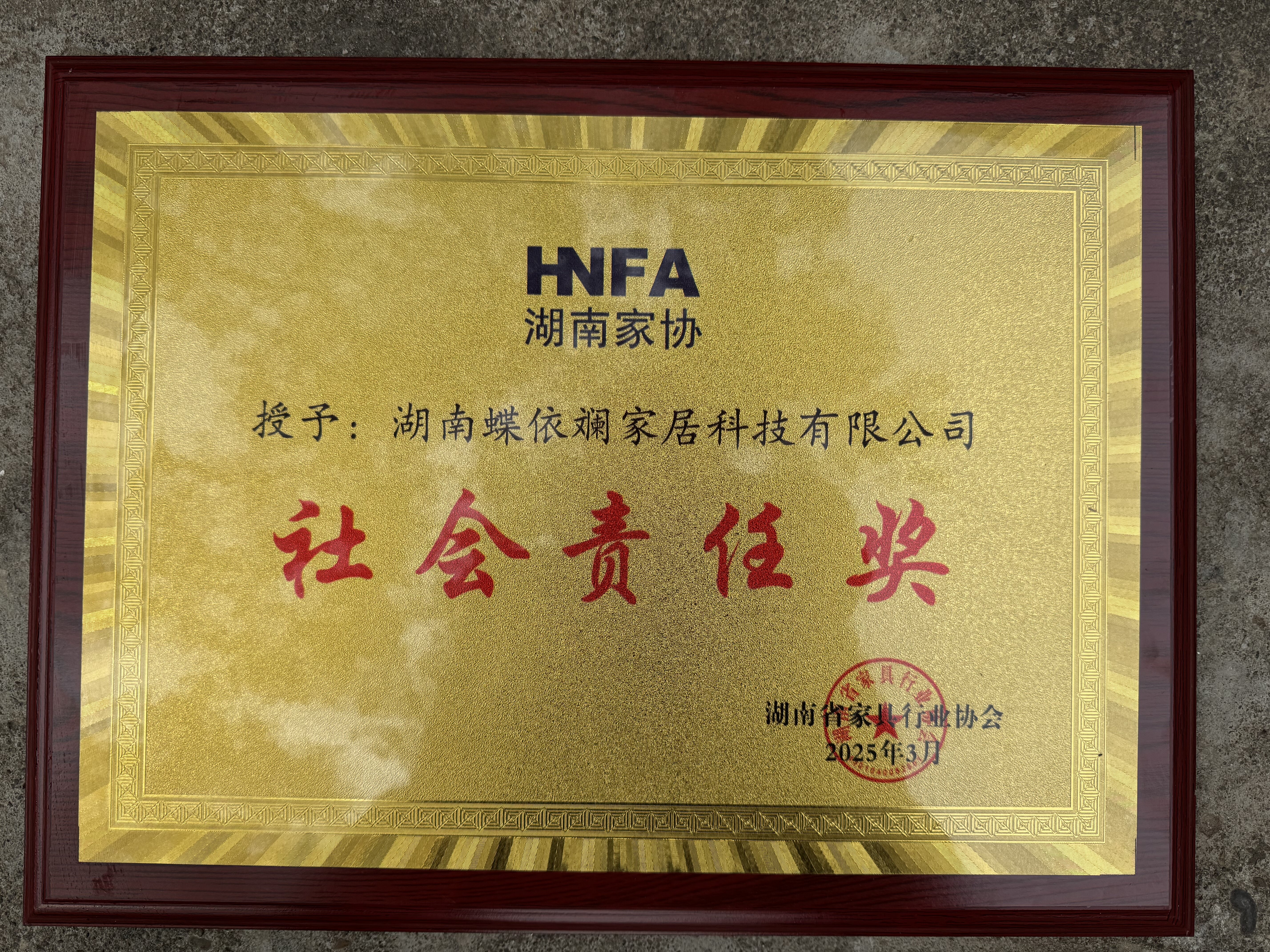 近日,湖南省家具行業(yè)協(xié)會(huì)第三屆二次會(huì)員大會(huì)圓滿舉行,深耕行業(yè)31年的蝶依斕整裝,憑借卓越的全案整裝服務(wù)能力、持續(xù)創(chuàng)新的行業(yè)影響力及積極踐行社會(huì)責(zé)任的突出表現(xiàn),榮獲協(xié)會(huì)“社會(huì)責(zé)任感”表彰。這一榮譽(yù)不僅是對(duì)蝶依斕品牌價(jià)值的認(rèn)可,更是對(duì)其推動(dòng)行業(yè)創(chuàng)新、回饋社會(huì)初心的肯定。