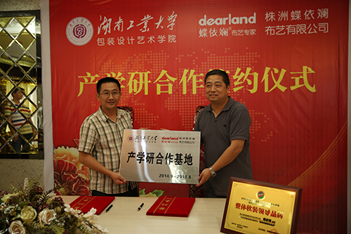 9月15日,湖南工業(yè)大學(xué)包裝設(shè)計(jì)藝術(shù)學(xué)院與株洲蝶依斕布藝有限公司產(chǎn)學(xué)研合作簽約授牌儀式在株洲銅鑼灣蝶依斕3000平米展廳隆重舉行。