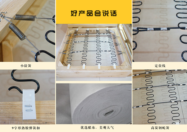 行業(yè)獨(dú)創(chuàng)五重定位受力系統(tǒng)(熟膠彈簧扣+進(jìn)口彈簧+定位線+定位小拉簧+酷布),增進(jìn)了坐墊海綿的平衡受力和舒適度,延長沙發(fā)的使用壽命。